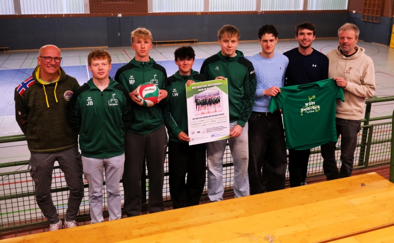 v.l.: Ralf Brese (Fachwart Volleyball), Johannes Butgereit (Orga-Team), Lasse Braun (Spieler U18), Luca Warmus (Orga-Team), Till Grabe (Trainer U18), Justus Hensen (Co-Trainer U18), Niklas Hinz (Orga-Team) und Norbert Brautmeier (1. Vorsitzender DJK Delbrück)
